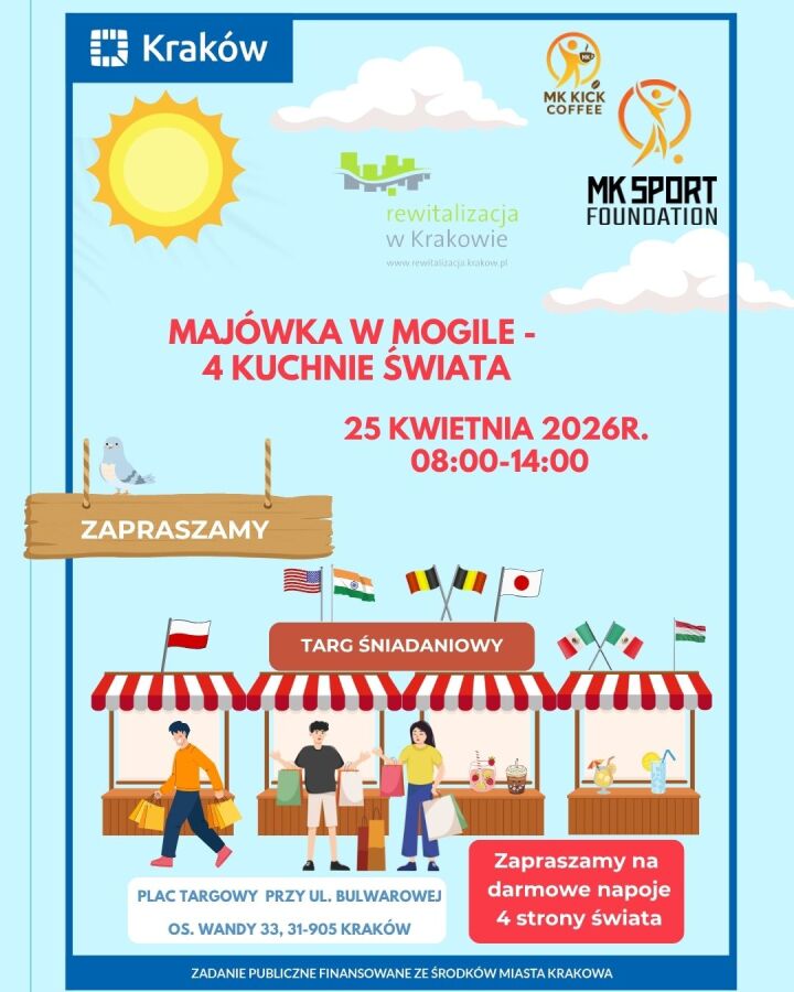 Fundacja MK SPORT foundation zaprasza na wyjątkowe wydarzenie pt. "Majówka w Mogile - 4 Kuchnie świata", gdzie spotykają się smaki świata, ludzie i dobra energia.