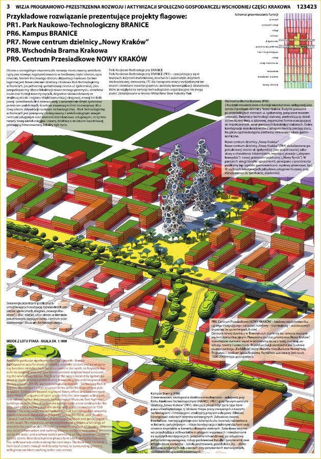 Zdaniem jury, większości z tych kryteriów odpowiadał projekt Nowego Krakowa zaproponowany przez zespół projektantów ARCA Biuro Projektów Urbanistyki i Architektury z Gliwic pod kierunkiem Michała Stangela. Zwycięski projekt przewiduje, że poza obiektami mieszkaniowymi, we wschodniej części Nowej Huty powstanie między innymi Park Naukowo-Techniczny Branice wraz z kampusem. Planowana jest też budowa tzw. Wschodniej Bramy Krakowa oraz Centrum Przesiadkowego Nowy Kraków.