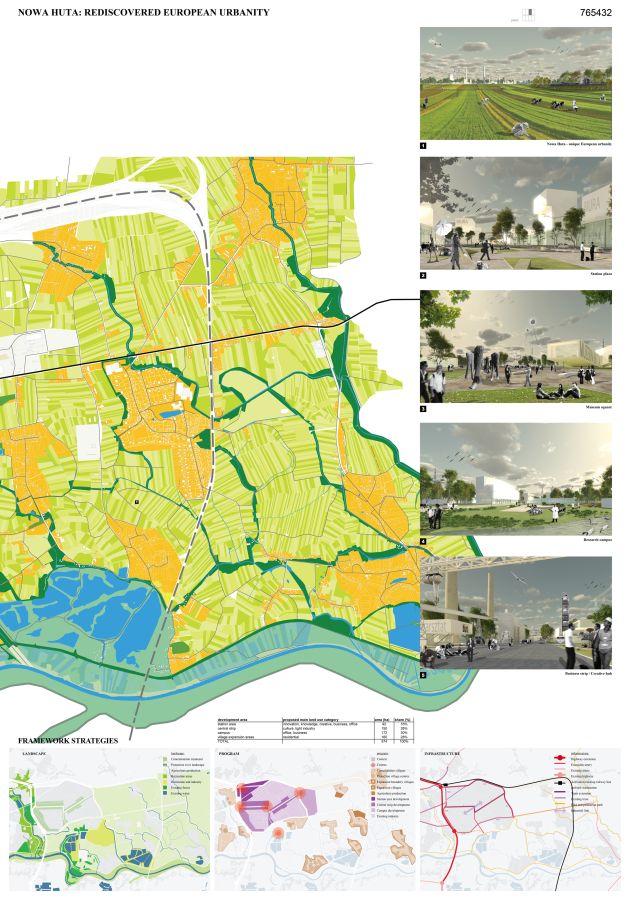Międzynarodowy konkurs „Kraków Nowa Huta Przyszłości" został ogłoszony 23 marca 2012 roku. Do udziału zgłosiło się 65 podmiotów. Ostatecznie sąd konkursowy wyboru dokonał spośród 23 prac, które napłynęły do konkursu.